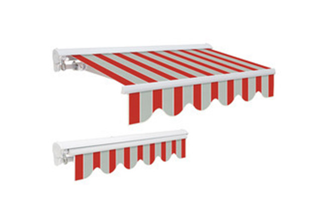 Motorized awnings have no vertical supports. Instead, they have retracting lateral arms, creating an unobstructed shaded area. These awnings are operated by an electric motor, generally hidden inside the roller bar of the awning. The arms open and close the awning at the touch of a wireless remote control or a wall-mounted switch.